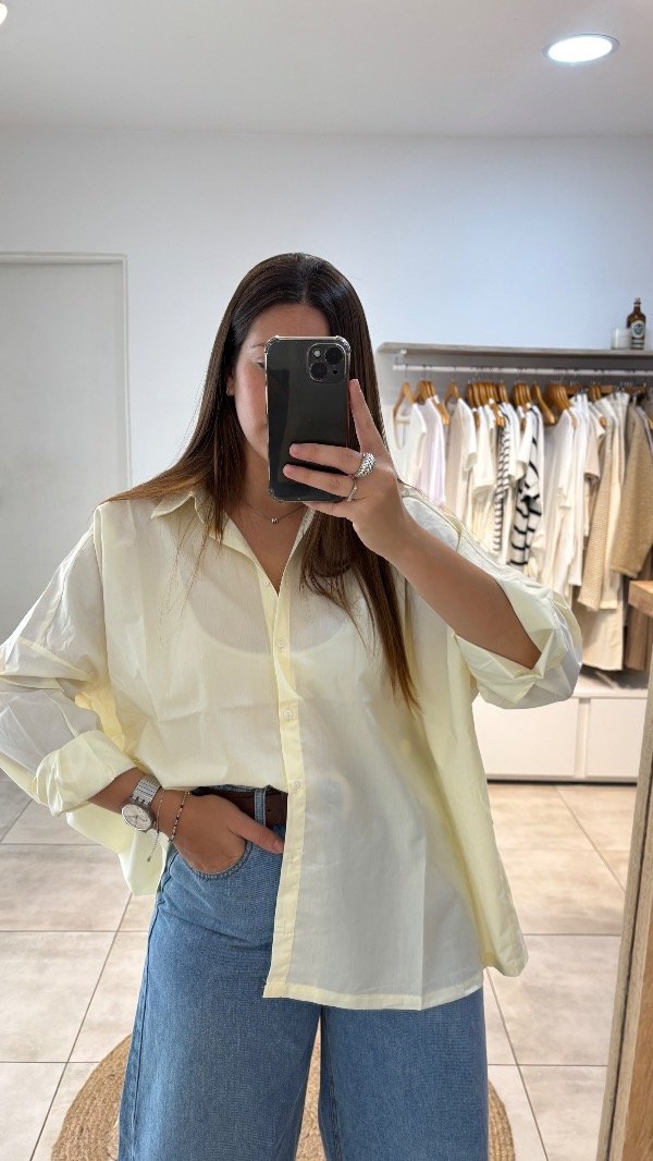 Descripción :Camisa suuuper amplia, con mangas caídas. Muy fresca & con toda la onda! un básico versátil y atemporal para elevar cualquier look con un estilo minimalista y sofisticado. Unico talle