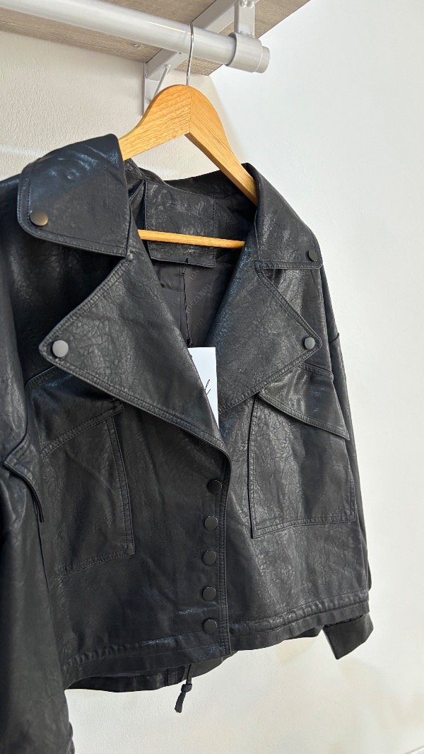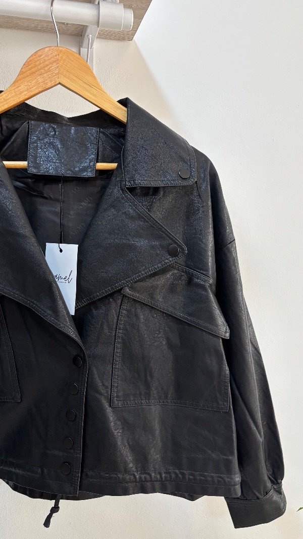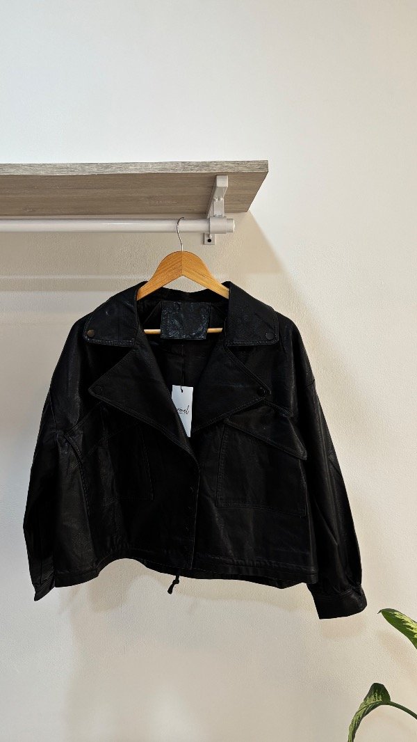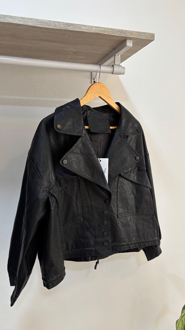 Descripción : esta chaqueta es todo lo que esta bien, es amplia over & se puede convertir en bomber gracias a su lazo interno que la hace contraer. Tiene bolsillos, sus detalles en tono negro mate como botones a presión, ¡bomber en tendencia! . Unico talle