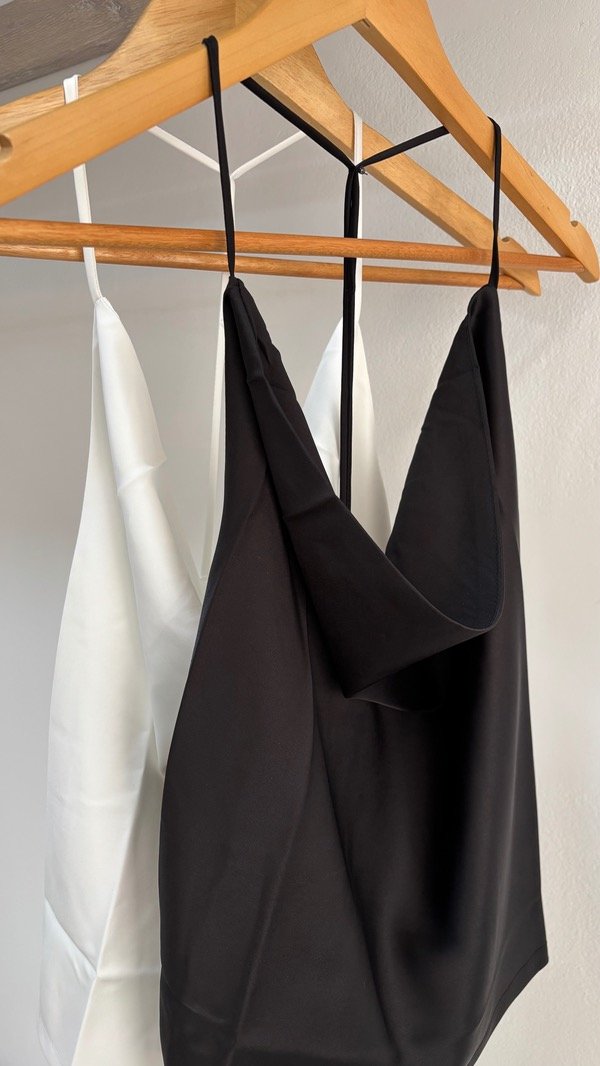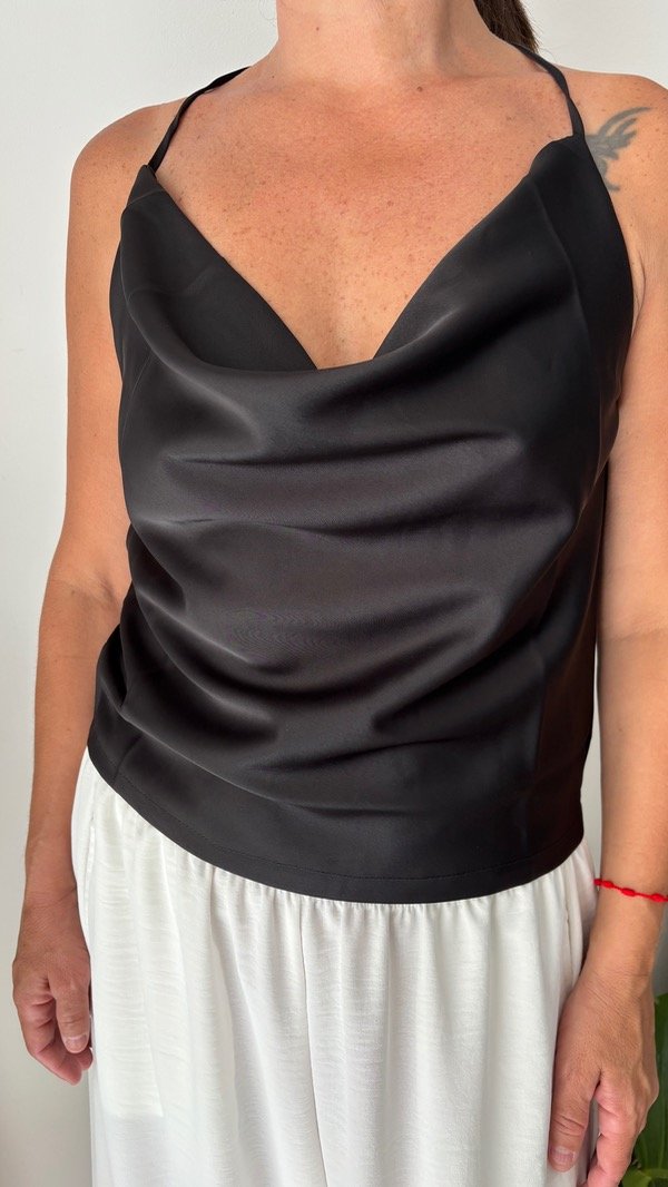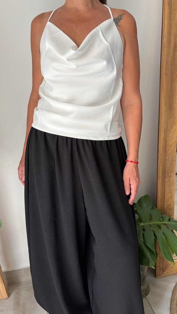 Musculosa con cuello caído y espalda super fina con áreteles cruzados. UNA BOMBA