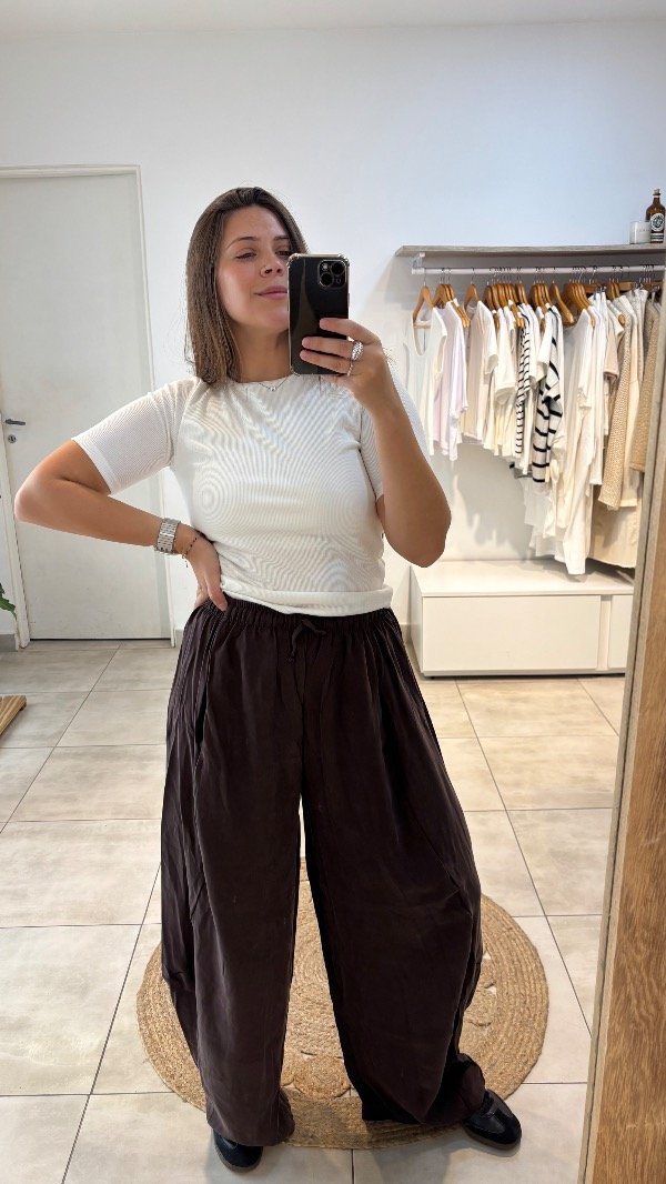 Descripción : pantalon babucha con cintura elástica & bolsillos en el frente . Unico talle