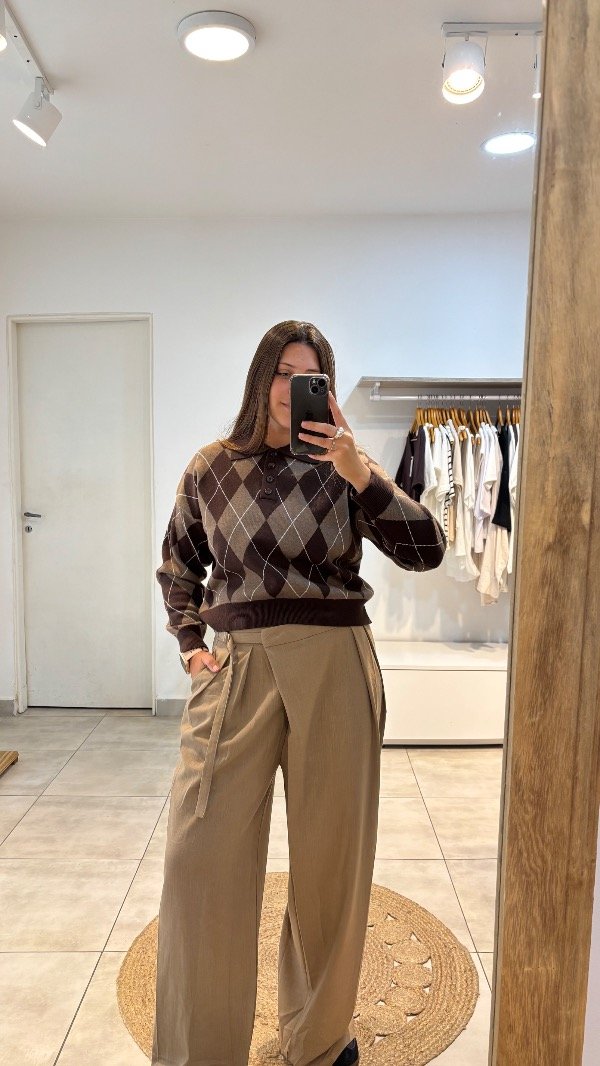 Descripción : pantalon tipo sastrero con falda cruzada & ajuste en lateral. Tiene bolsillos & pinza de agarre