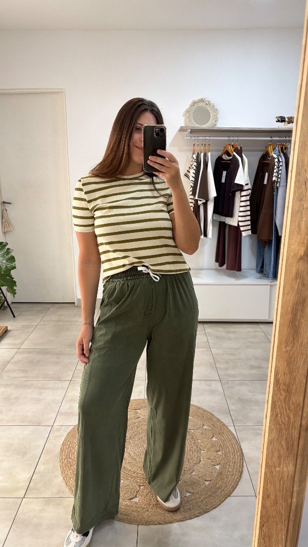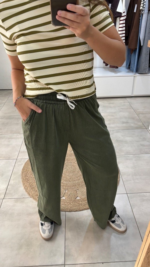 Descripción : pantalon recto tiro alto elastizado. Tiene bolsillos, cintura elástica & cordon para ajustar en la cintura. Unico talle