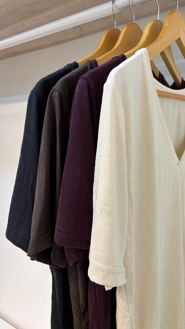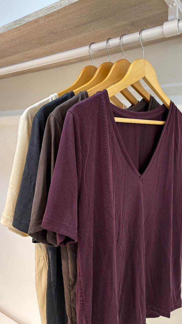Descripción : remera escote en V holgada, elastizada & una caída increíble que la vuelva super fina. Unico talle