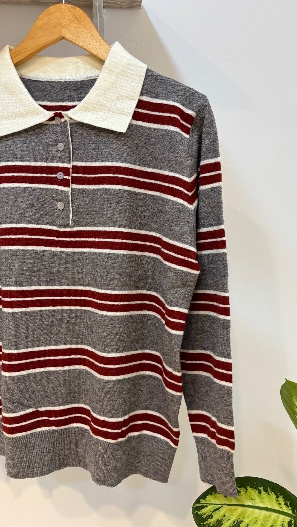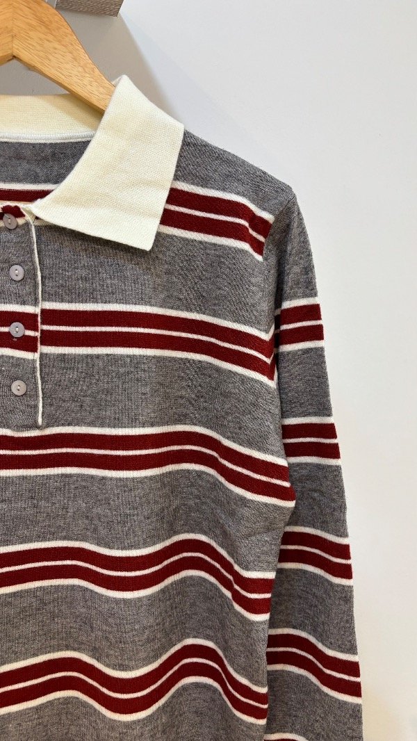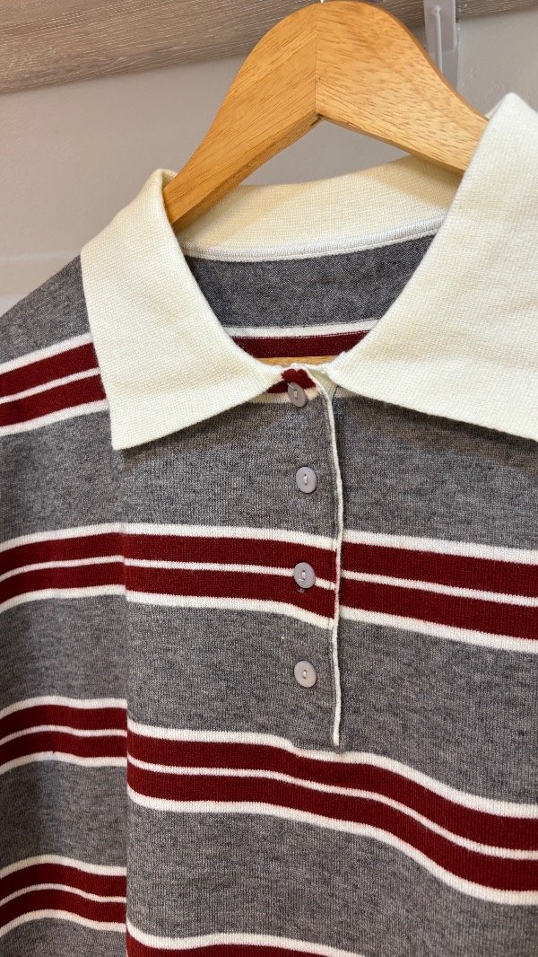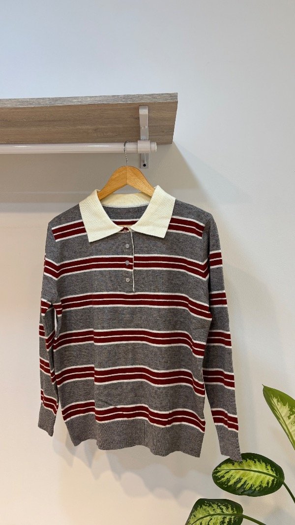 Descripción : sueter chomba con botones, tramada a rayas combinada. Unico talle