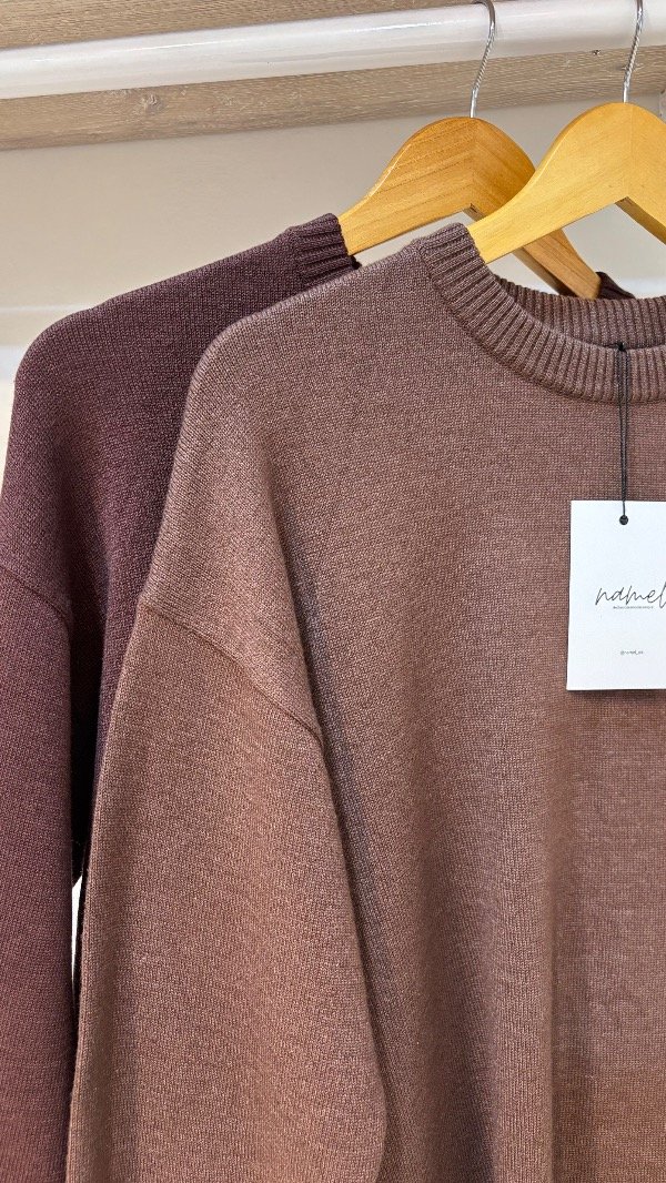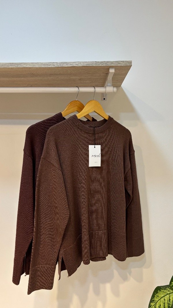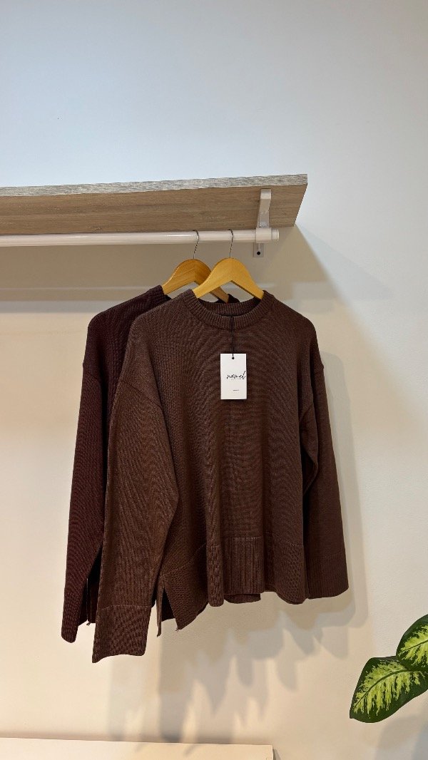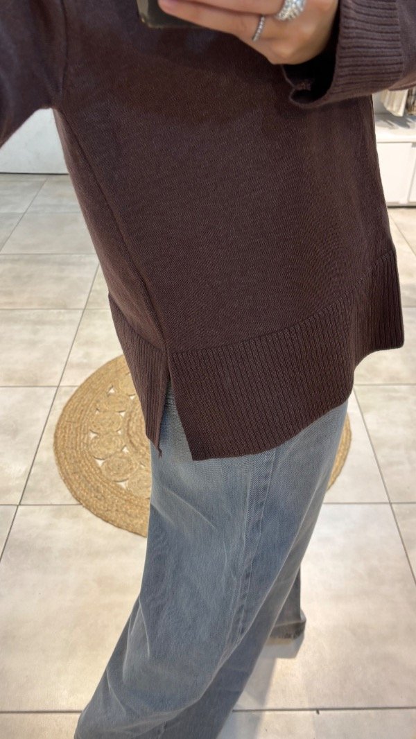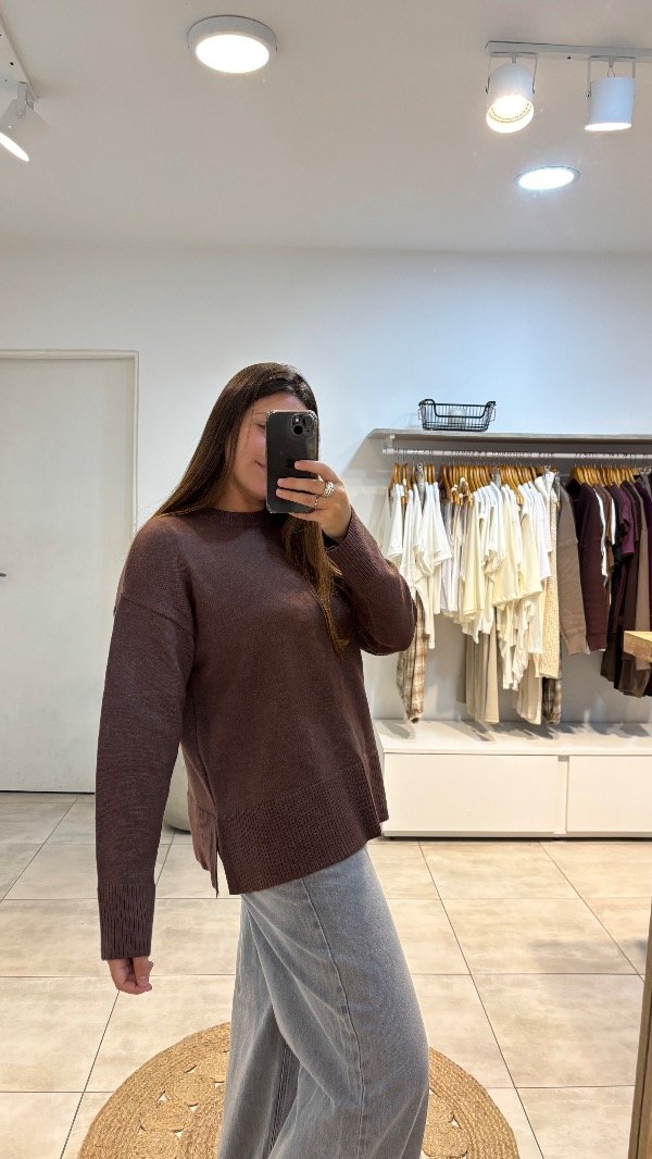 Descripción : sueter amplio con cuello redondo & tajos a los laterales. Unico talle