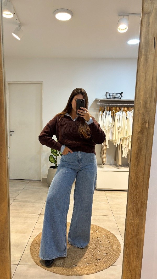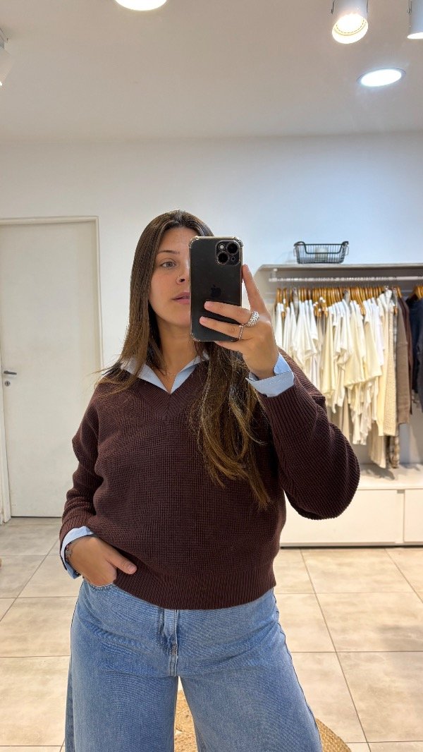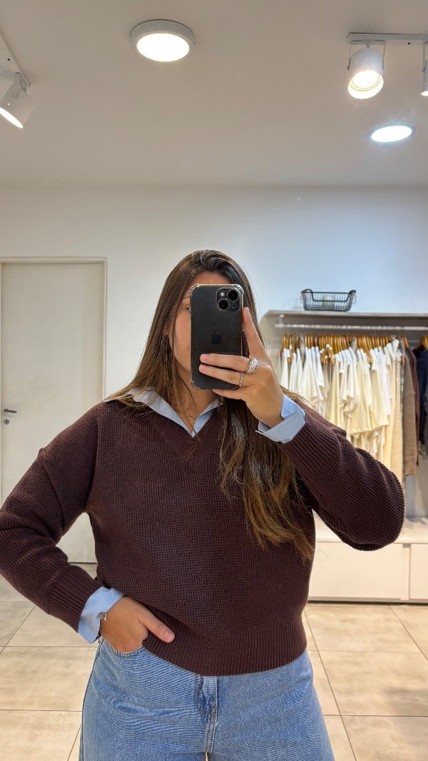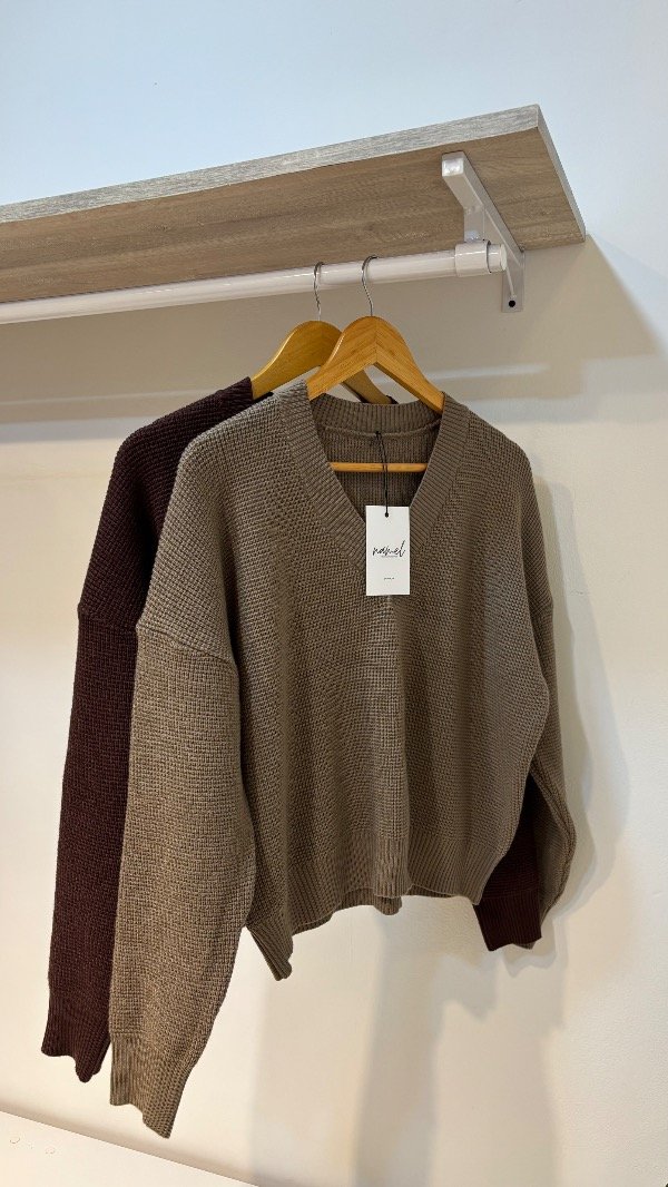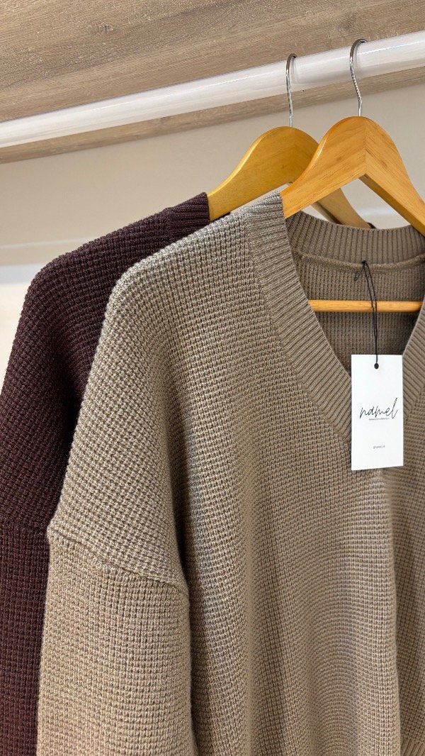 Descripción : sueter tramado tipo waffle, con cuello en V. Unico talle