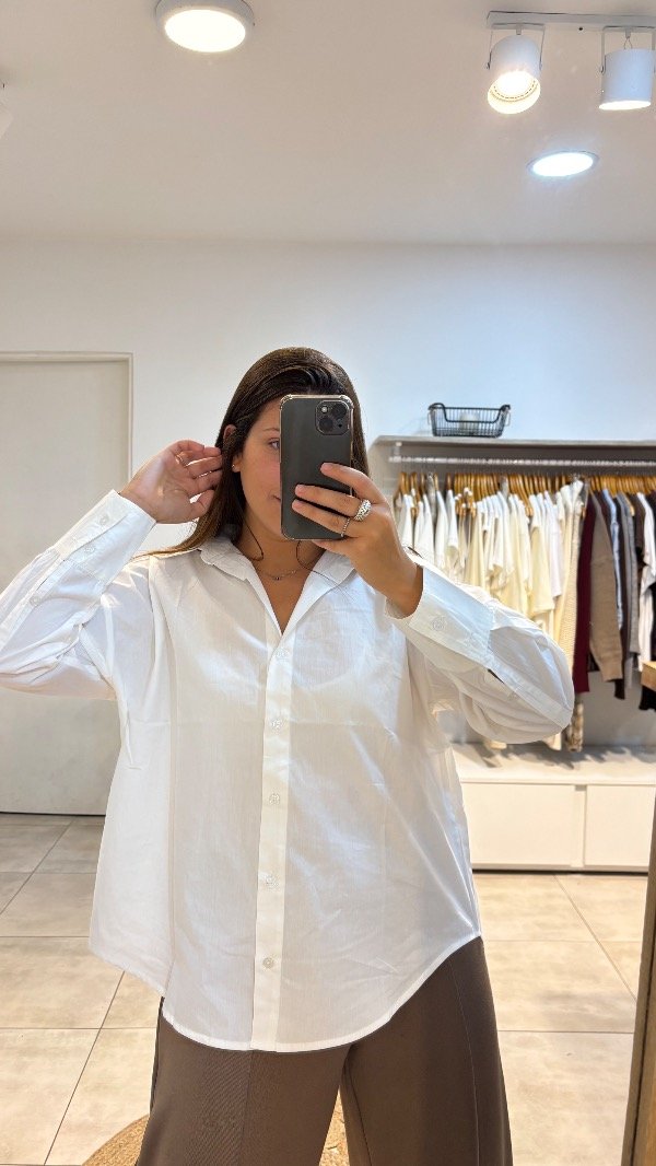 Descripción : camisa amplia con cuello abierto en V. Unico talle