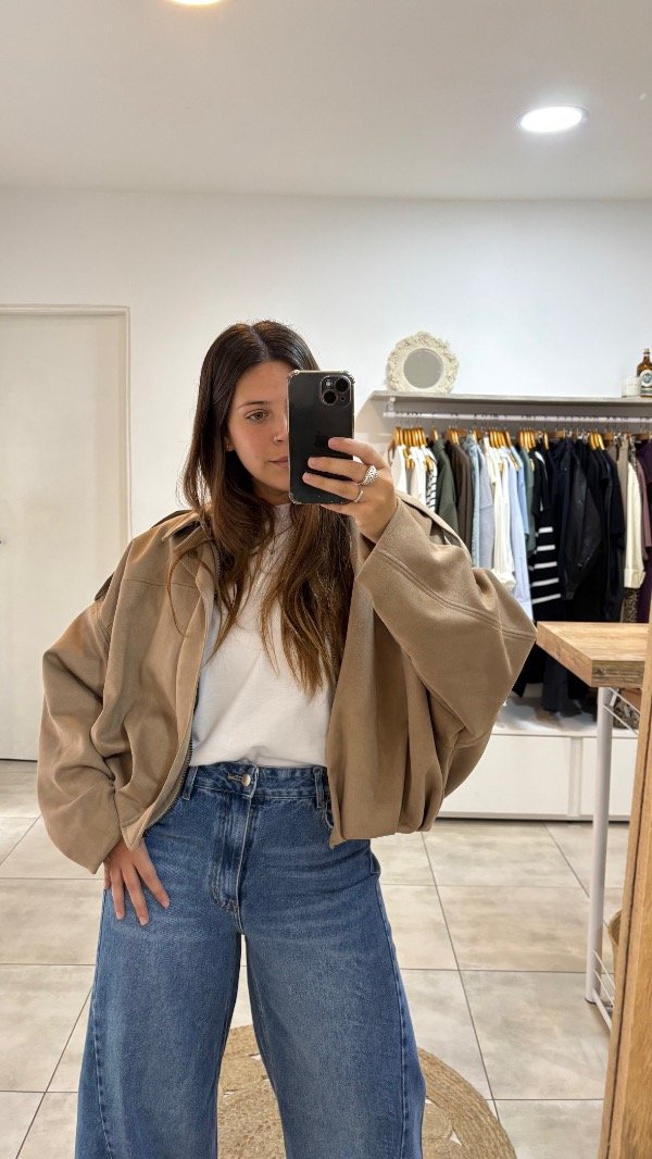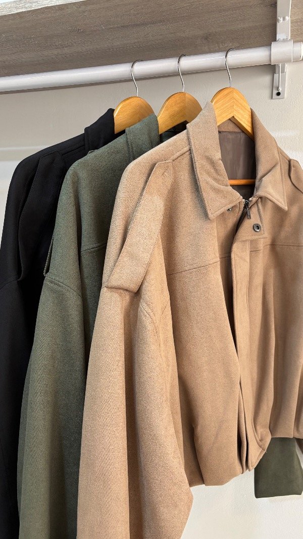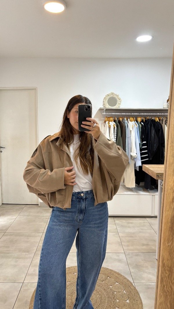 Descripción : campera gamuzada con charreteras & con pliegues en el ruedo, ¡bomber en tendencia! . Unico talle