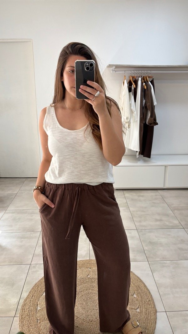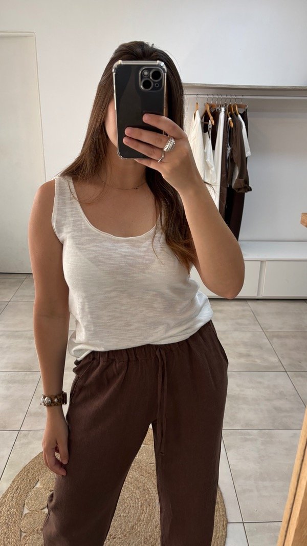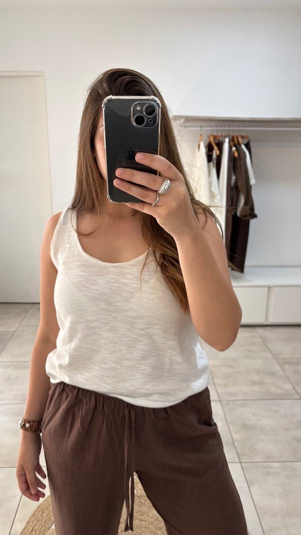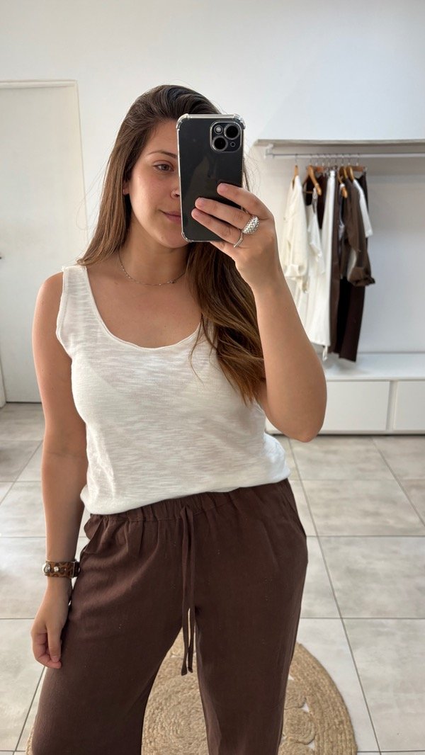 Musculosa amplia tejida, de hilo algodon flame al corte.