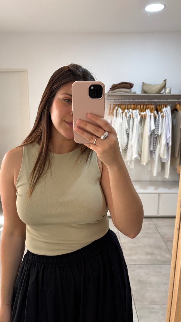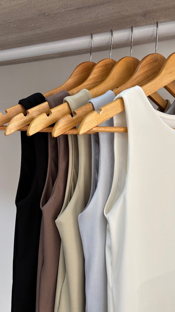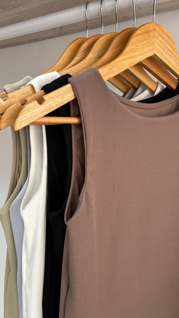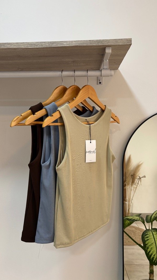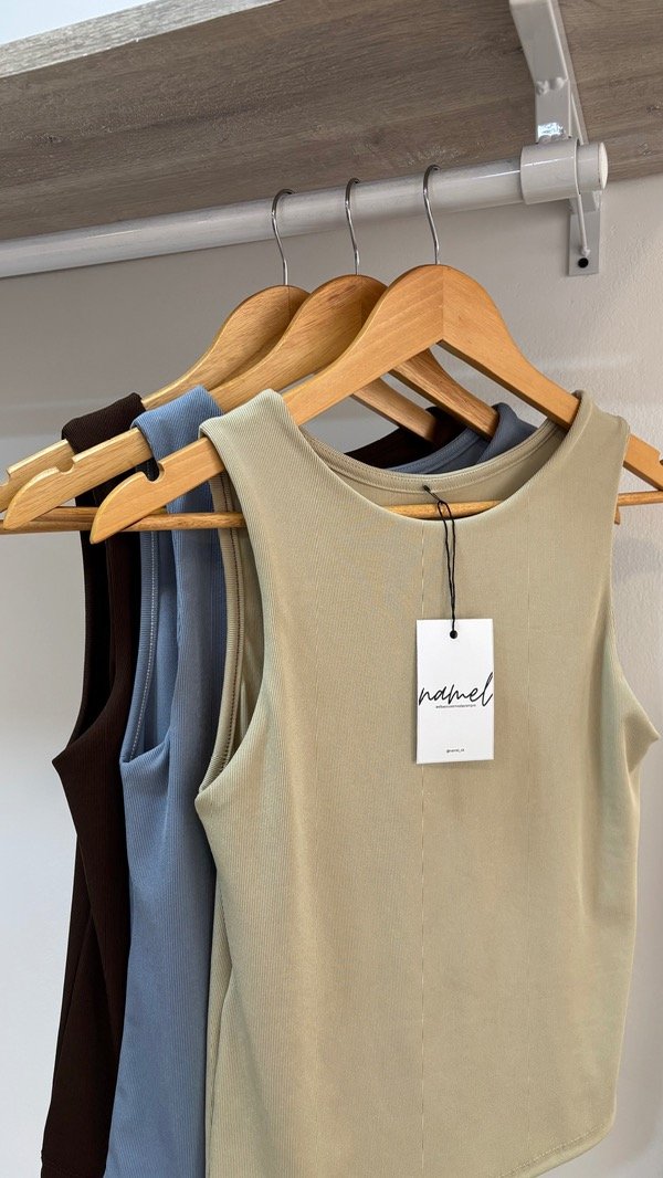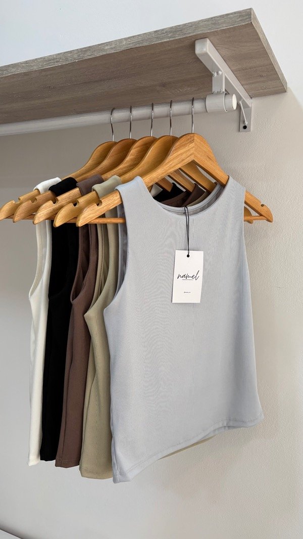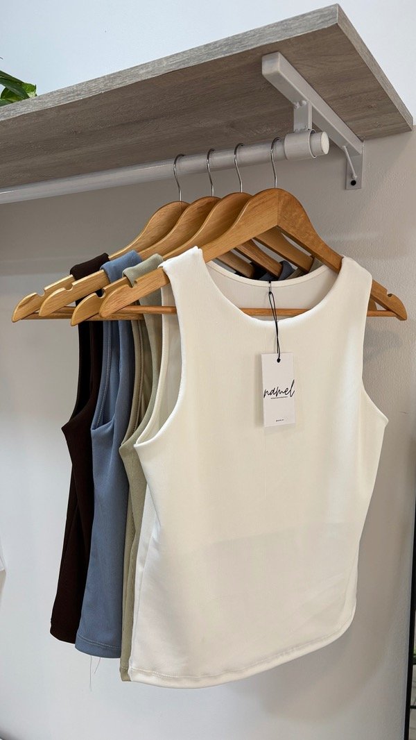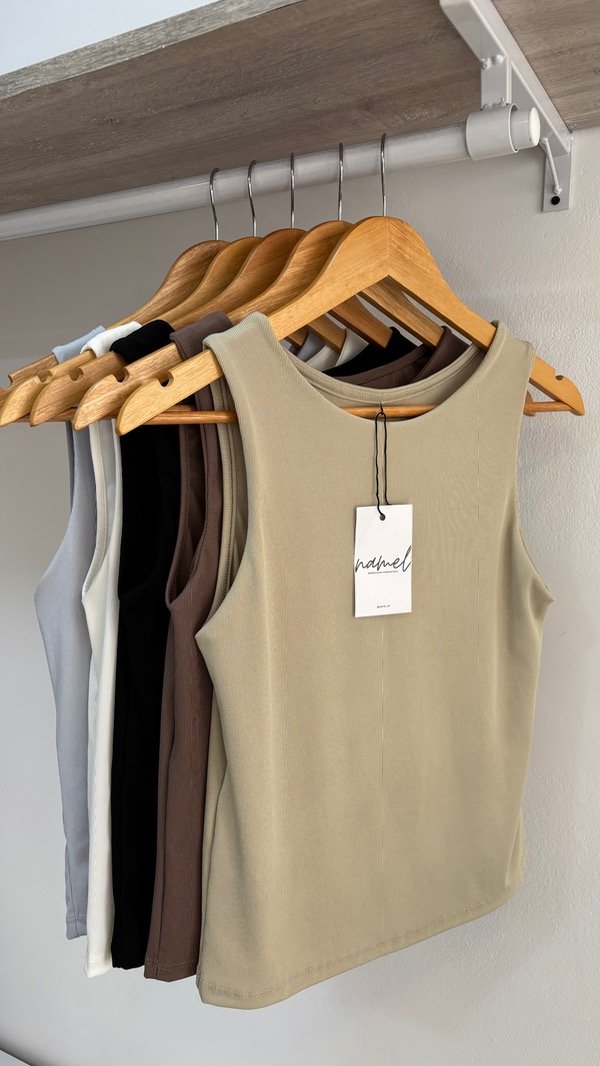 nuestro básico de siempre, musculosa doble tela en busto , cuello cerrado y ajustada al cuerpo