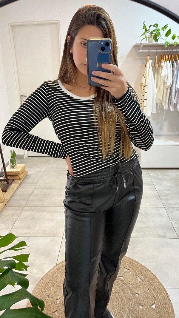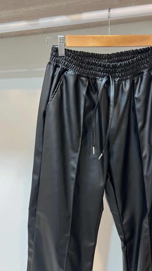 Detalle de cordón decorativo con terminales metálicas en cintura y bolsillos laterales.