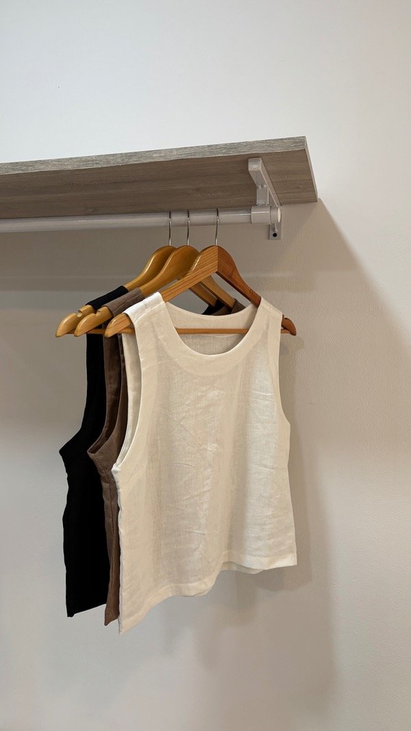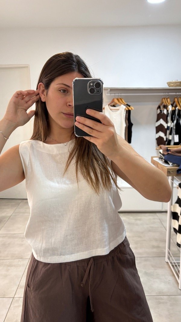 Remera sin mangas amplia & fresca. Confeccionada en lino
