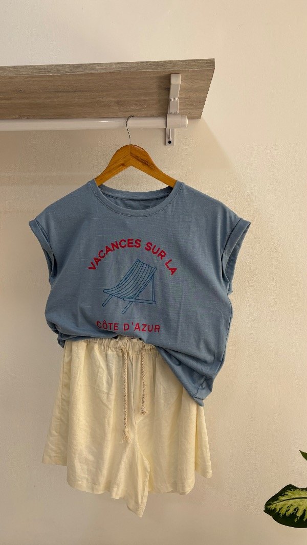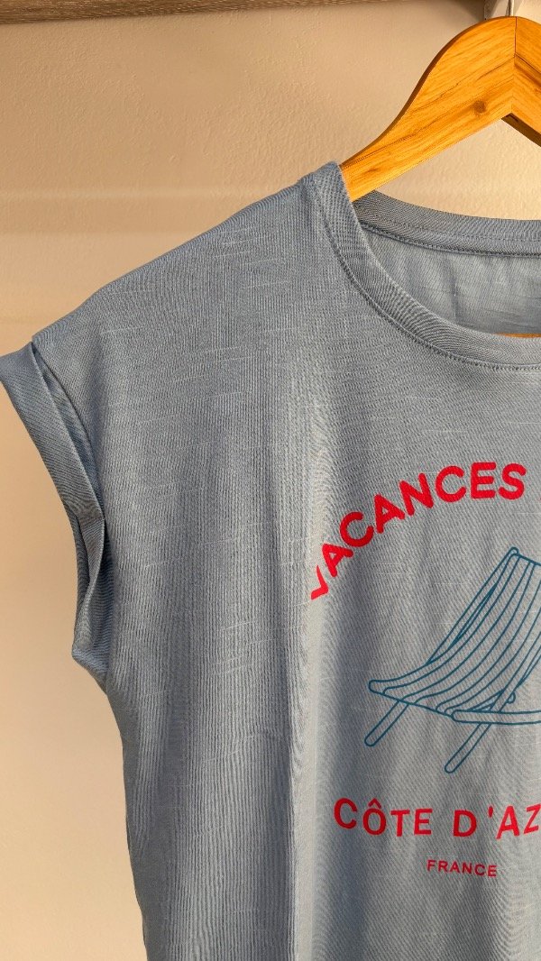 Descripción : Remera sin mangas con ruedo, estampada . Unico talle