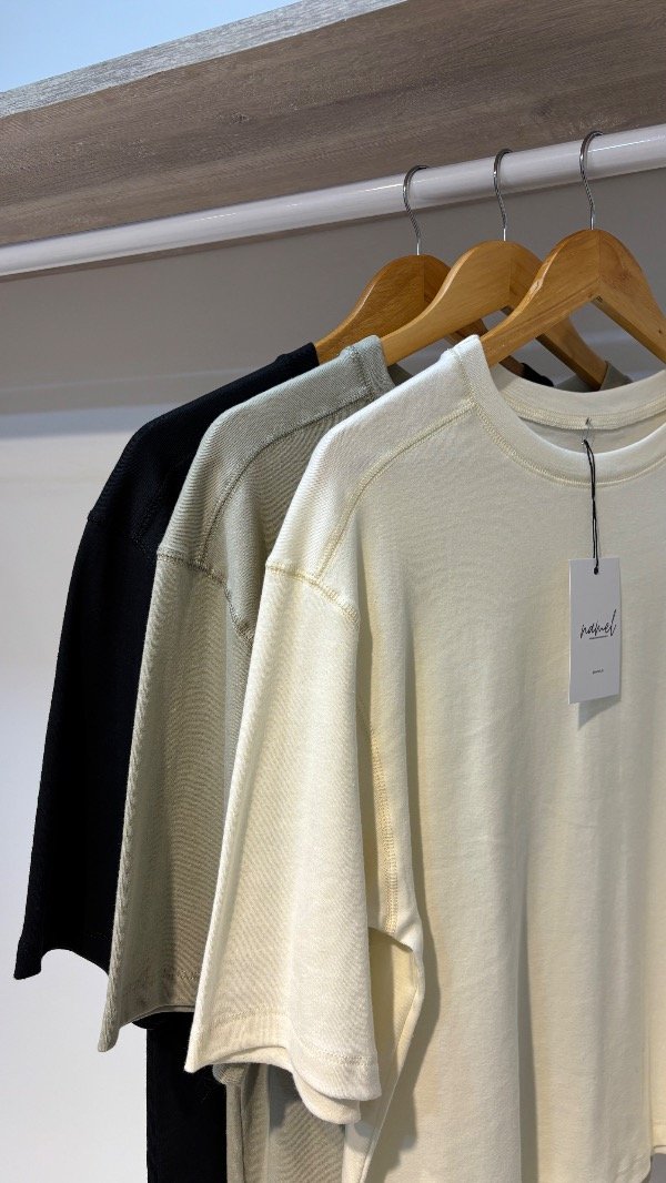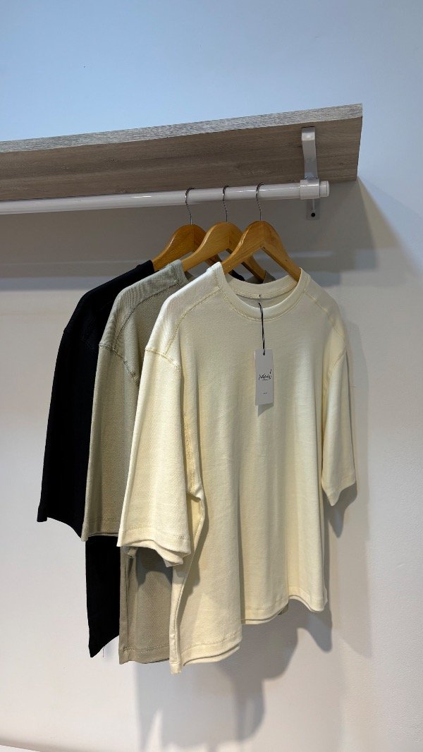 Descripción : remera tipo oversize con magas anchas & costuras a la vista. Unico talle