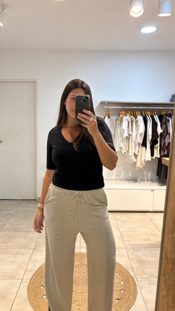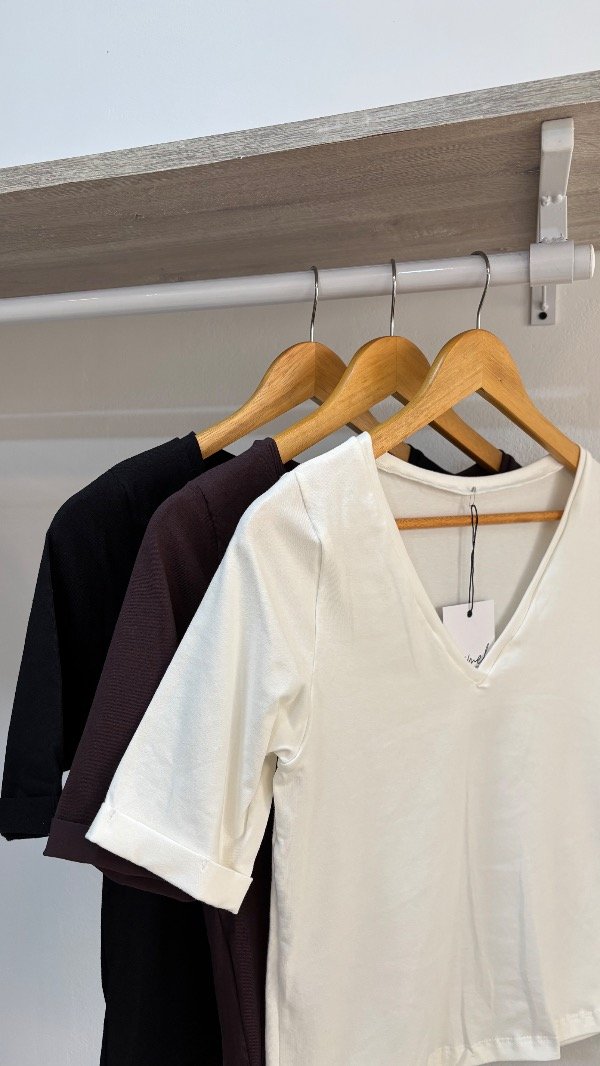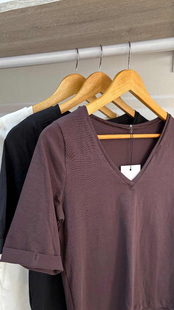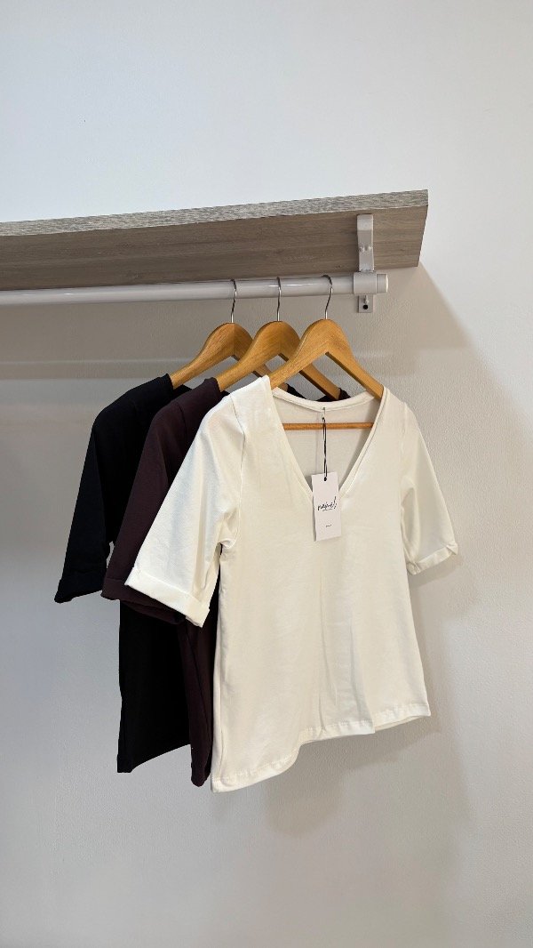 Descripción : remera basic, escote en v & detalle de dobladillo en las mangas. Unico talle