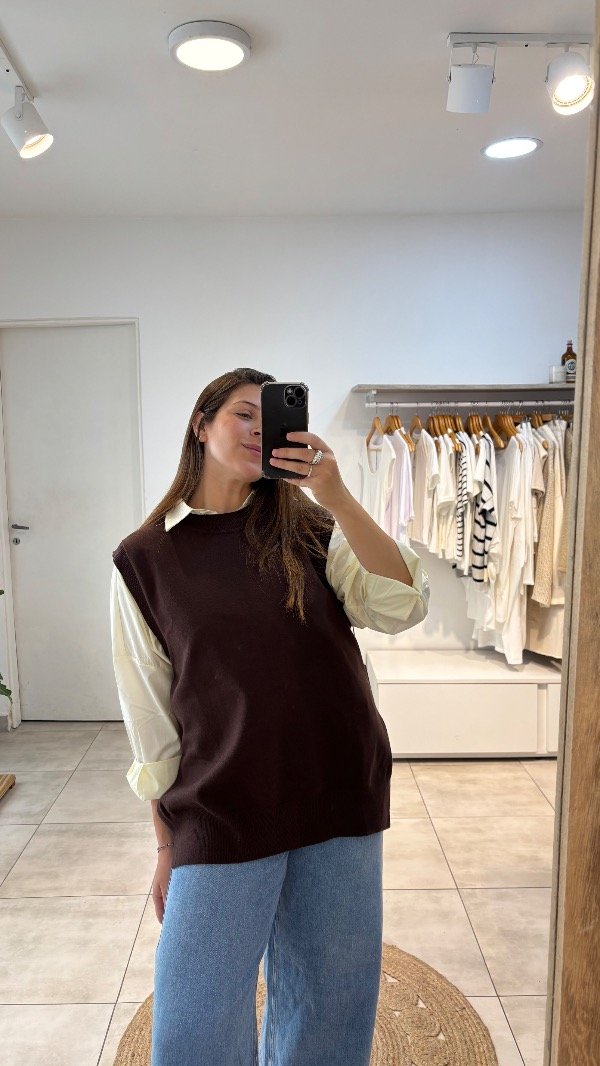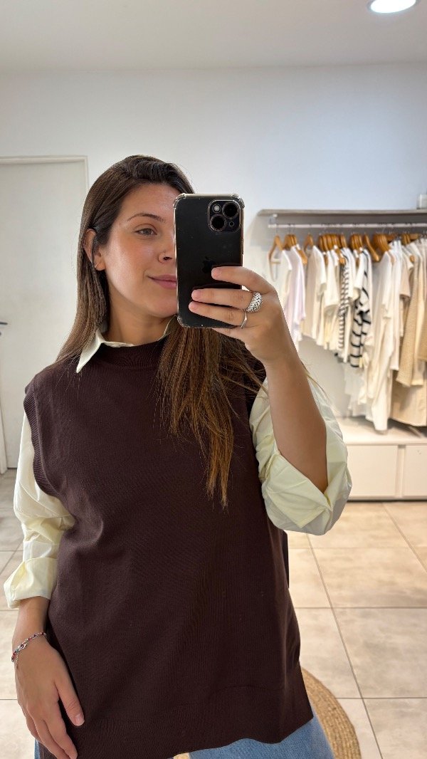 Descripción : chaleco oversize, con tajos a los laterales. Unico talle