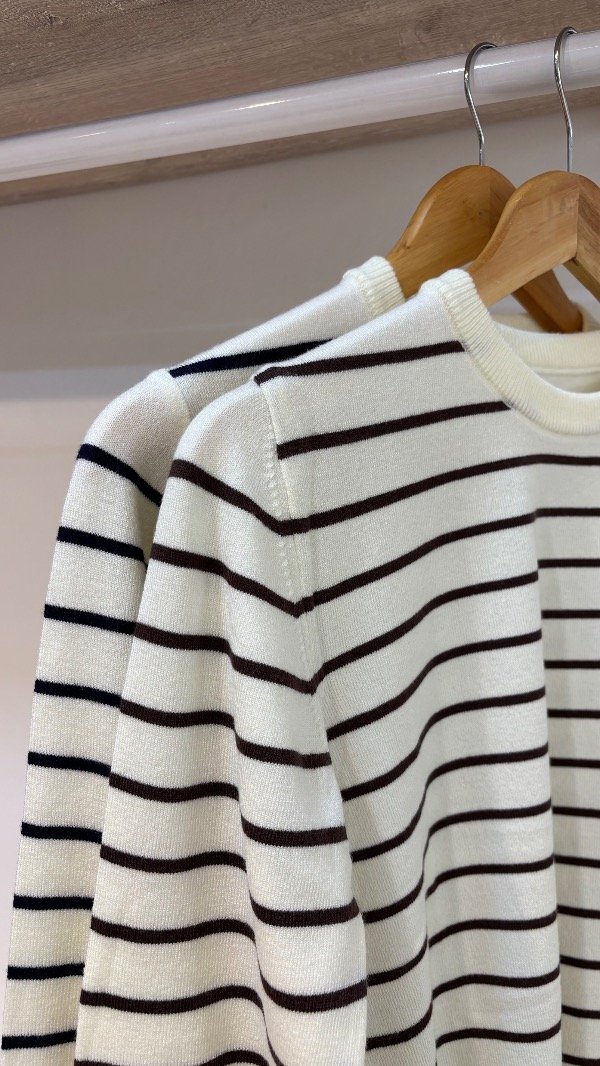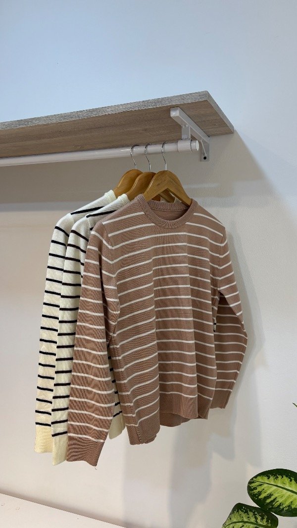 Descripción : sueter rayado, cuello redondo. Unico talle