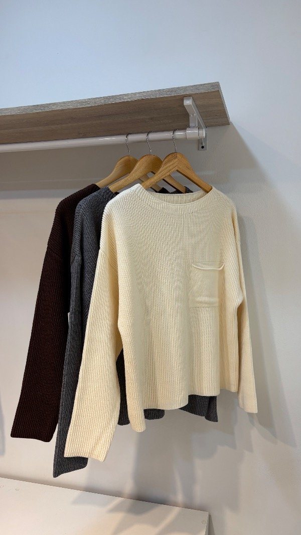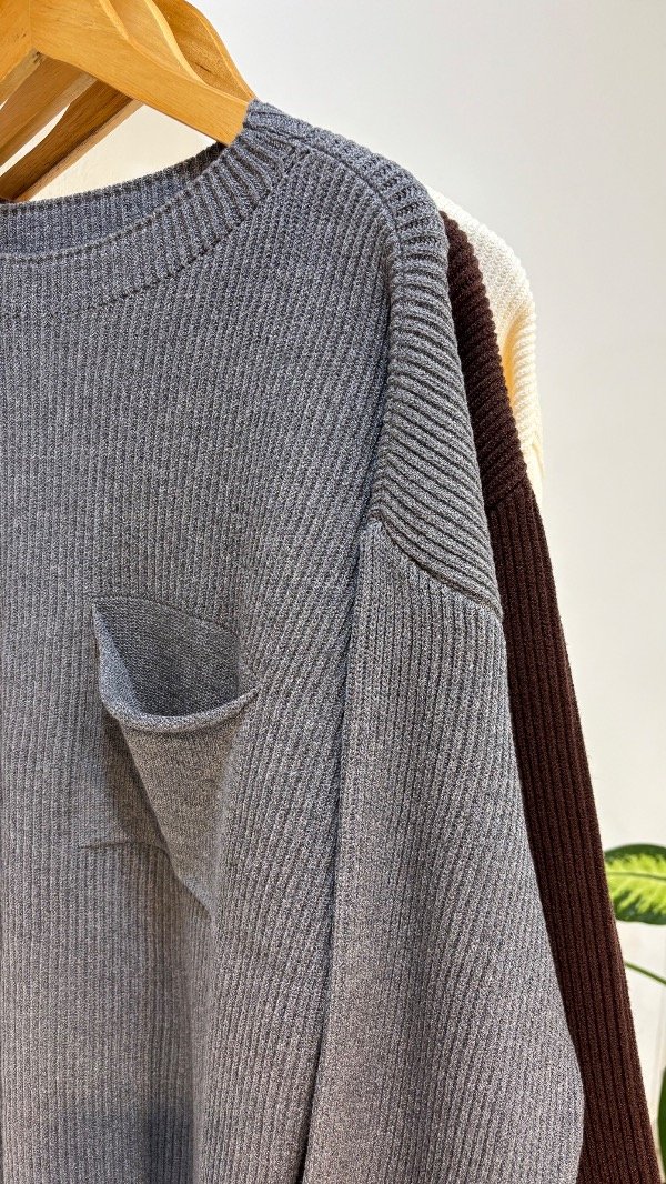 Descripción : sueter amplio con cuello redondo & detalle de bolsillo. Unico talle