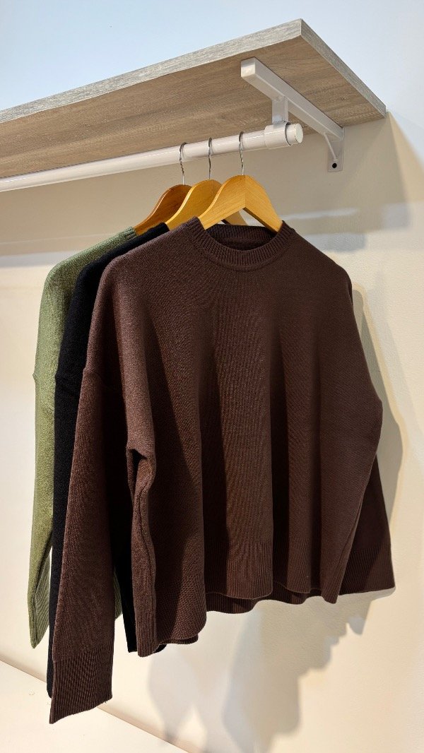 Descripción : sueter cuello redondo amplio, super comodo & con spandex . Unico talle