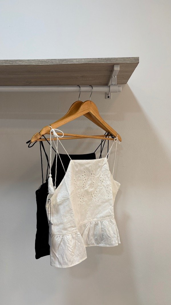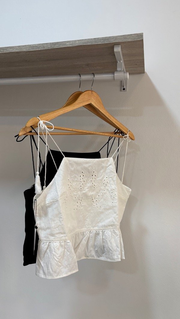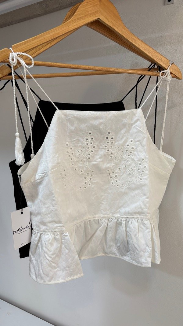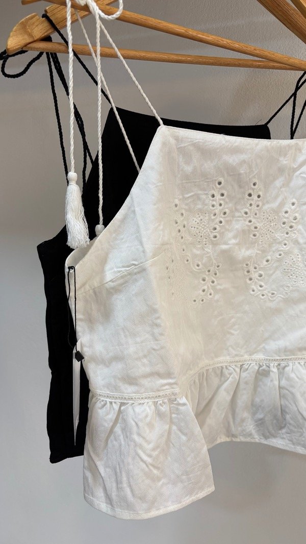 Musculosa top con tiras regulables & muy trabajada en bordado