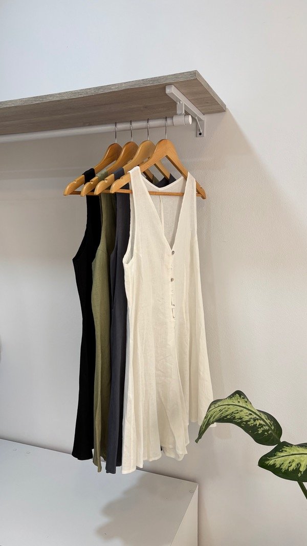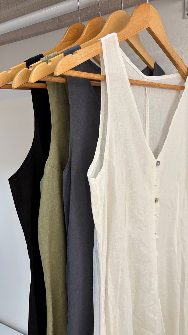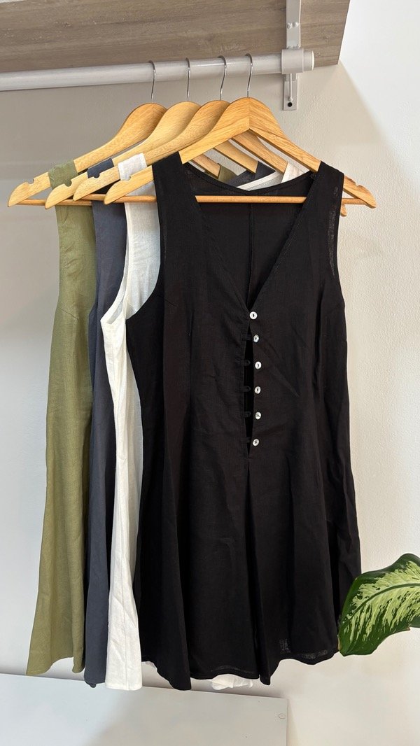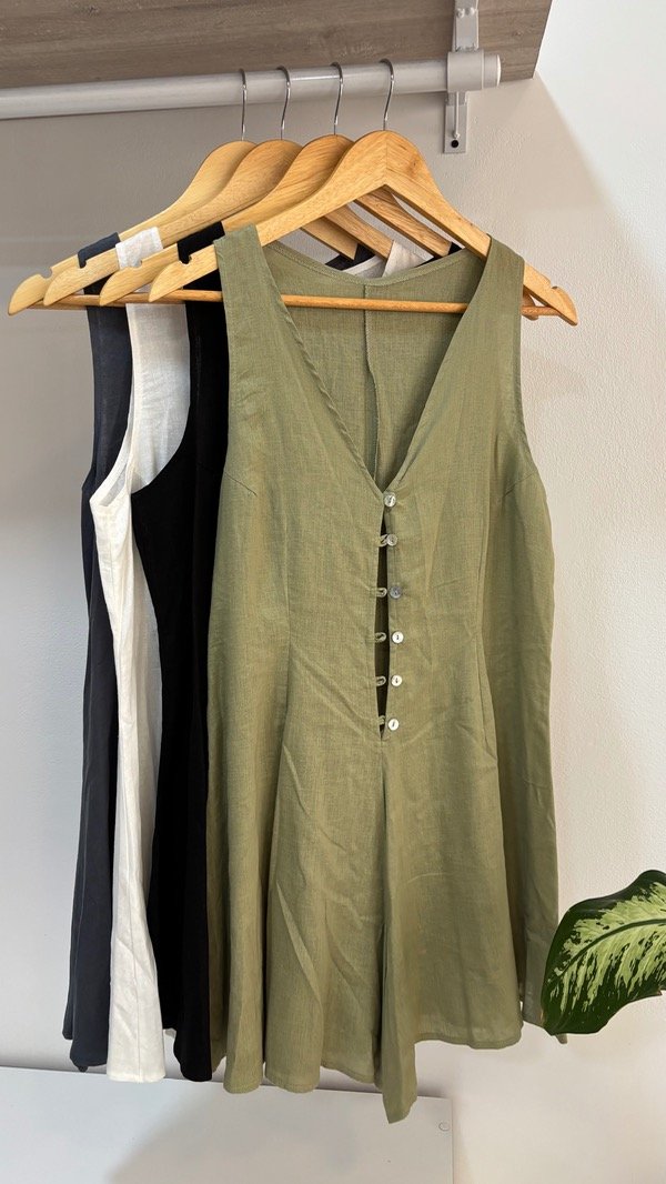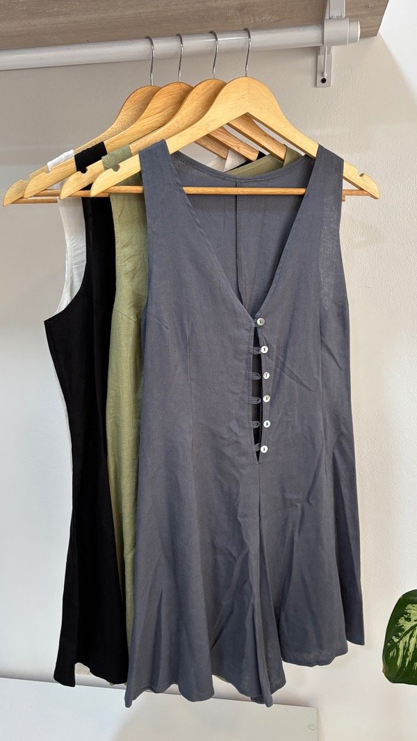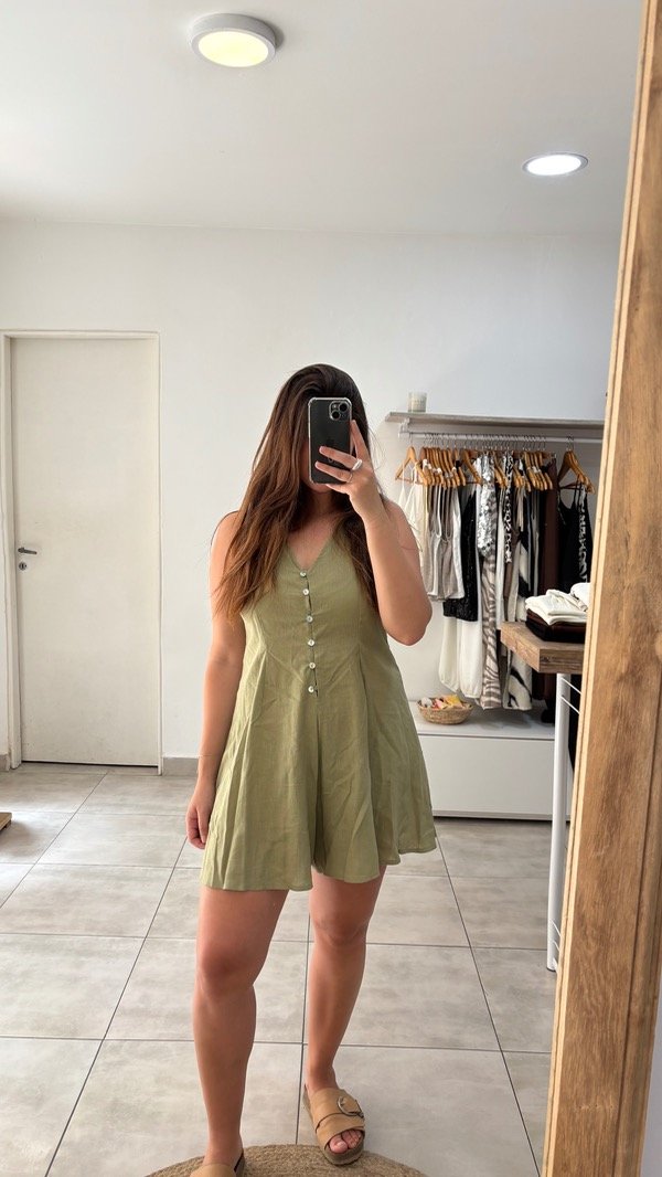 Mono corto abotonado, pinzas en la cintura para estilizar la silueta & piernas sueltas. Muy comodo & fresco
