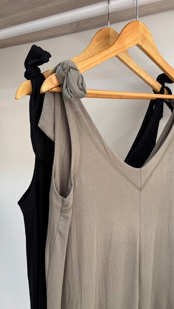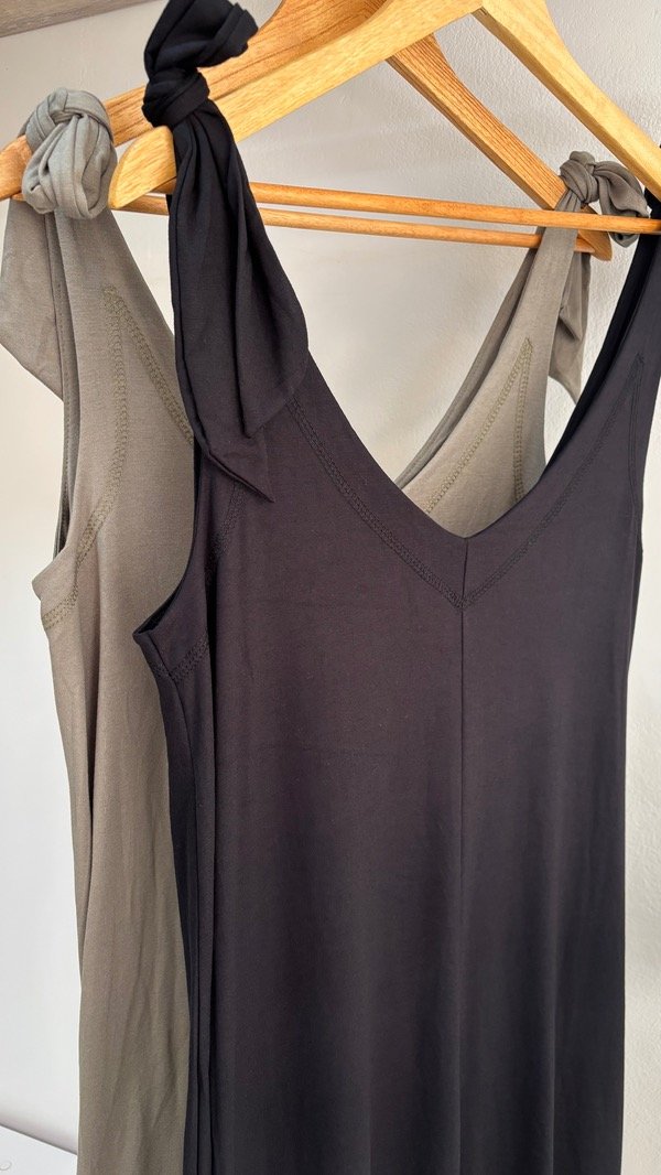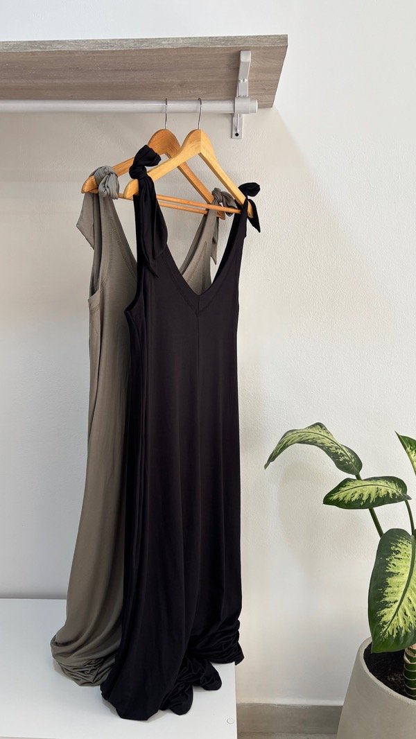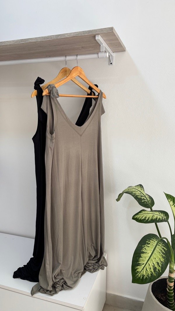 Vestido amplio, holgado, com mecha caída & tiras regulables. Una prenda que resuelve